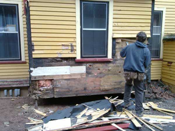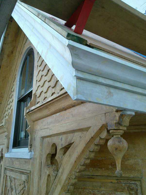 Previous additions were removed and the front porch roof line was changed to be more complementary to the original structure. All windows were replaced with new custom wood windows. Rotten siding was removed and all paint was removed from trim work being preserved. Great care was taken to create exact matches of siding and molding profiles. The original gingerbread work in the front gables was carefully removed to be restored and then re-installed. Much of the sheathing was removed with the siding which allowed for rewiring and repair of framing in the exterior walls. Old insulation was removed and replaced with spray foam insulation and modern house wrap. Everything was painted with exterior solid stains that will avoid peeling paint in the future. Porches and decks were rebuilt with custom railings and balusters to complement the building.